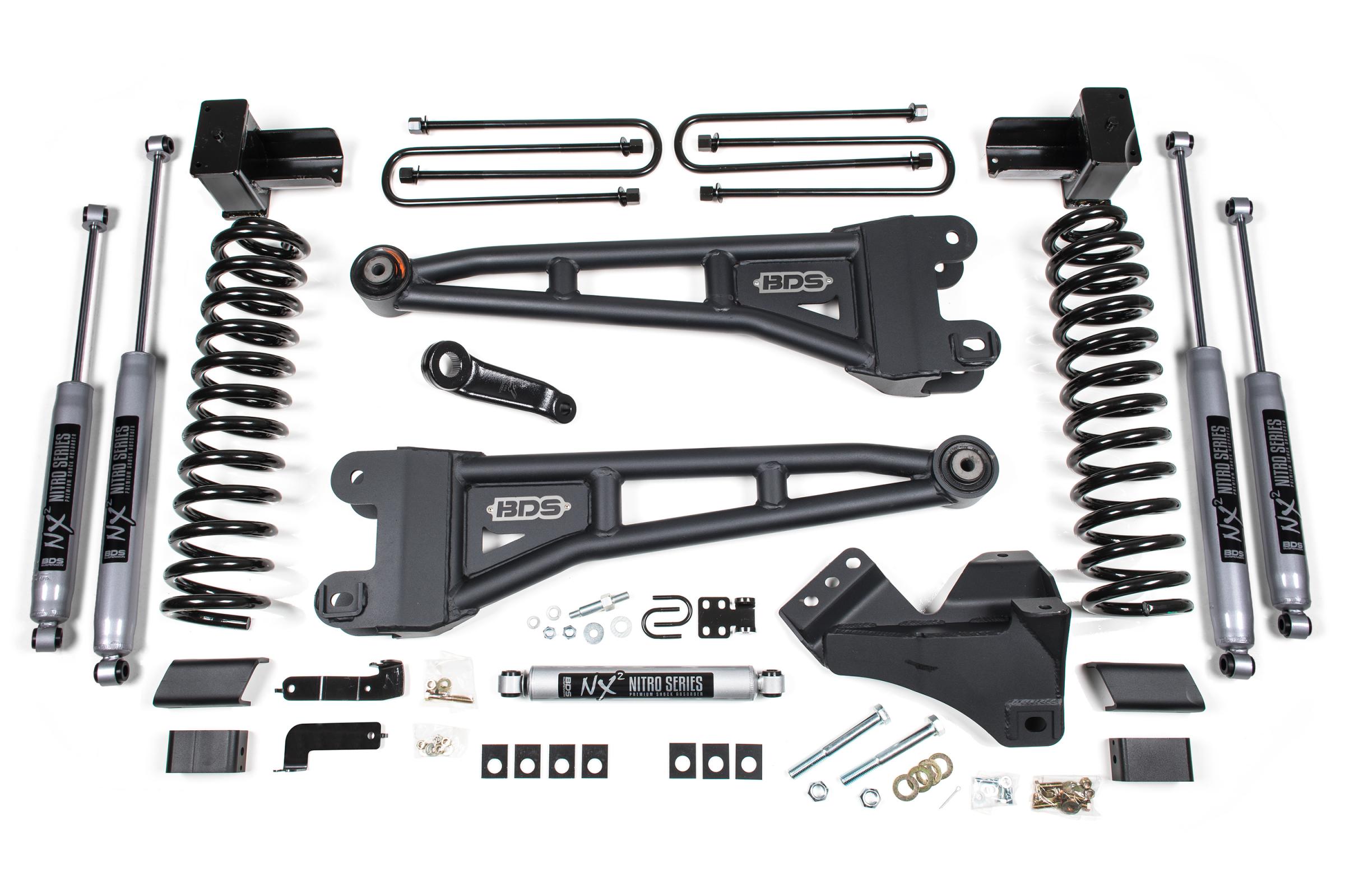 Improve the ride on your Ford F350 Dually Super Duty gas truck with this 4-inch radius arm lift kit from BDS Suspension. Designed to improve stance, performance, and capability, this kit includes everything necessary to set your dually truck up right with clearance for up to 37 inch Tires.