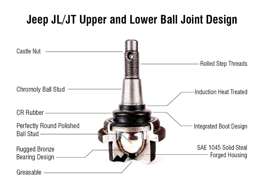 Apex Chassis Heavy Duty Knurled Ball Joint Kit 19-22 Jeep Gladiator JT 18-22 Jeep Wrangler JL/JLU Rubicon Mohave Sahara Sport Includes: 2 Upper and 2 Lower Apex Chassis