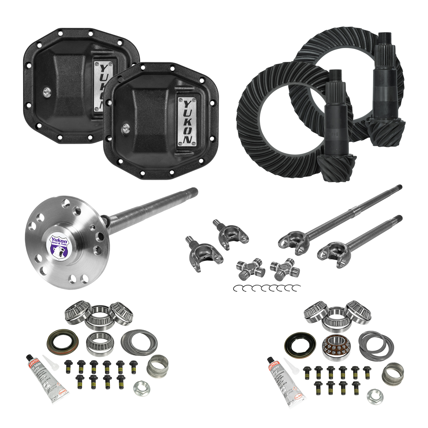 Yukon Stage 4 kits include front and rear ring and pinion sets, Master Overhaul kits, Yukon Hardcore Diff Covers, and chromoly front and rear axles. Theyre also an opportunity to improve traction by moving to a more aggressive gear ratio.
