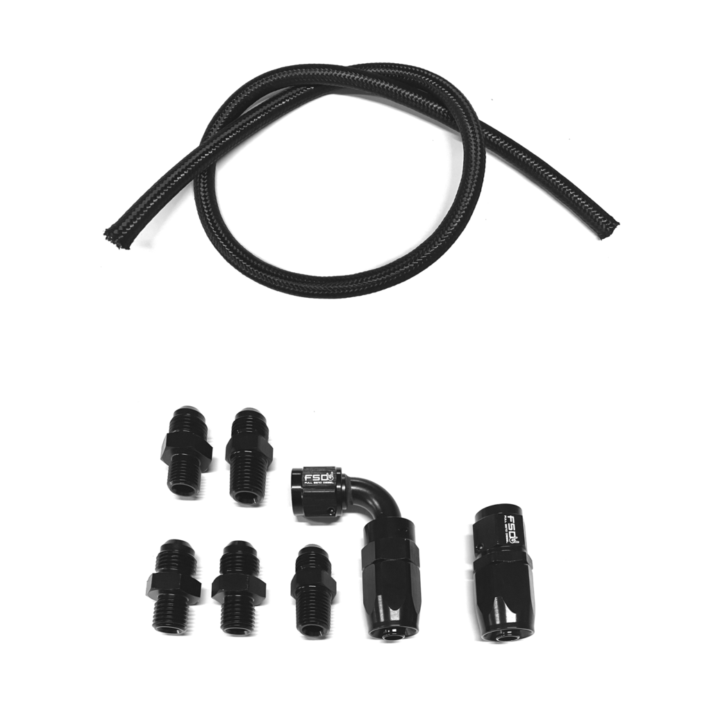 Universal Cummins Turbo Feed Kit. This kit is designed for guys who are making or have custom turbo set ups where none of our premade feeds will work. This kit includes all of the fittings and hose you need to assemble your own turbo Feed kit.
